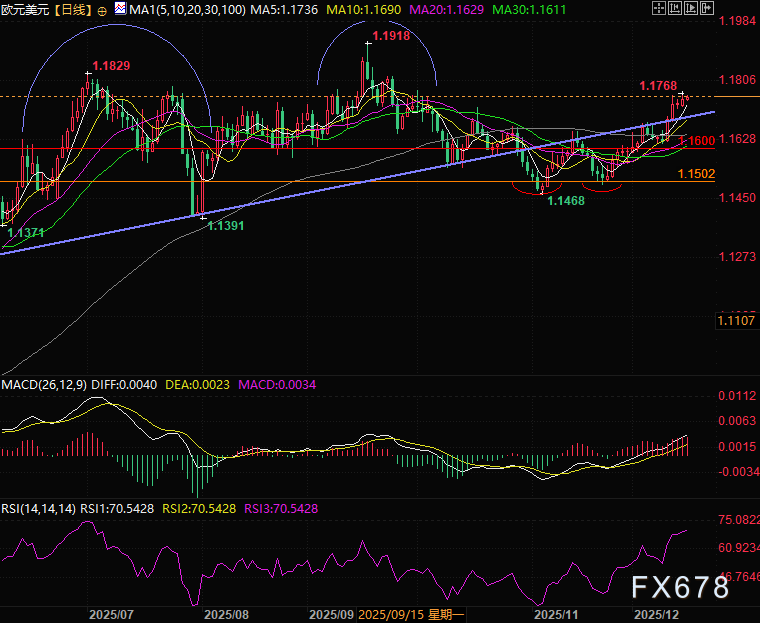 当前欧元交易的核心,是“经济全年扩张的韧性+年末通胀升温”共同夯实的“欧央行政策鹰派”逻辑,与美联储宽松预期形成的政策差,是欧元多头的核心驱动力。