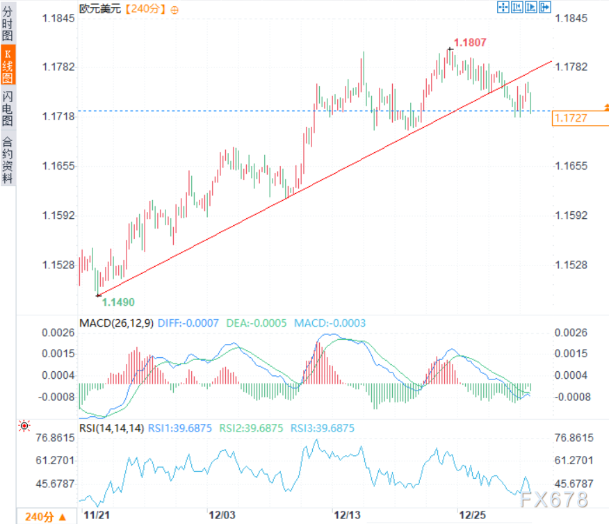 下行方面,空头需要跌破12月17日和19日低点(约1.1700附近)的支撑位,才能确认趋势转变。若如此,市场焦点将转向12月4日高点和12月11日低点区域(约1.1680),以及12月8日和9日低点(约1.1615附近)。